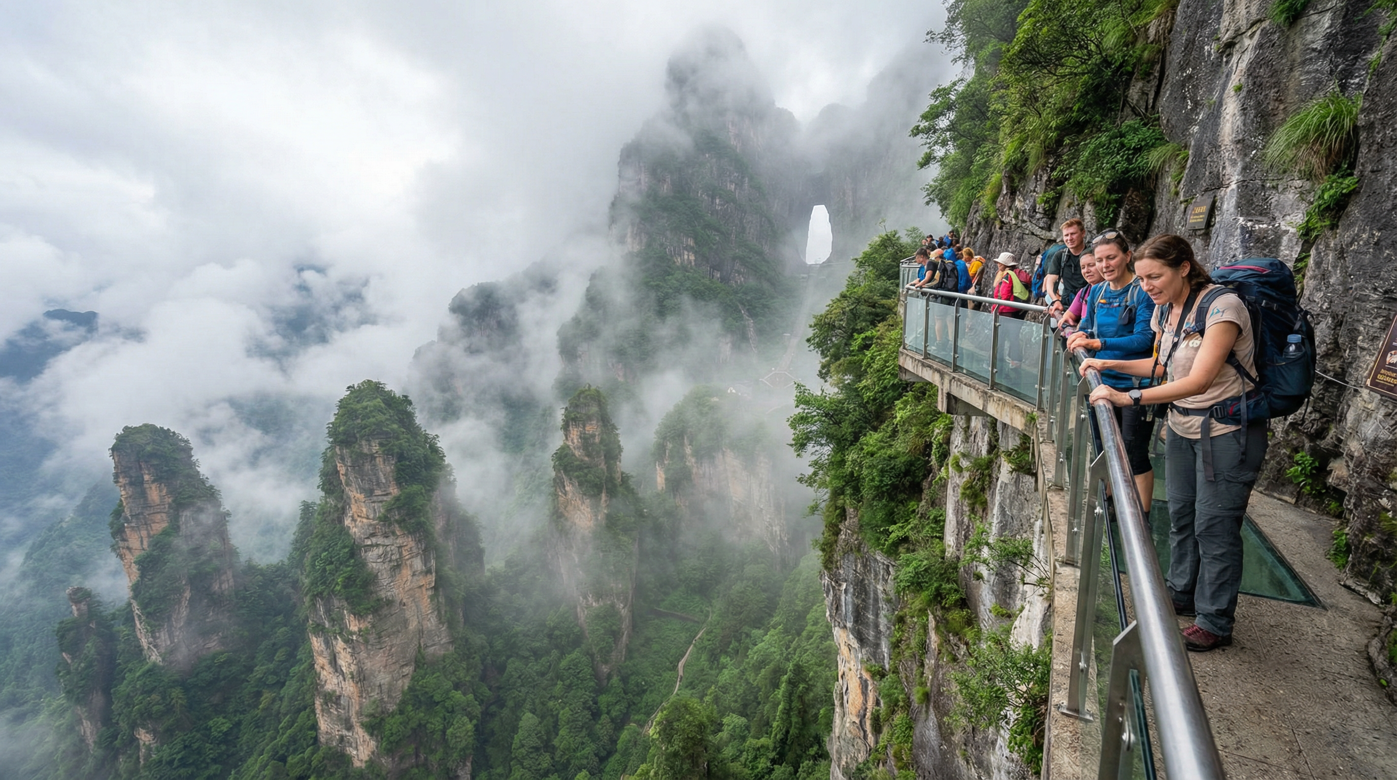 Where Avatar mountains touch the sky. Explore surreal sandstone pillars, lush forests, and the world-famous glass bridge in China's adventure capital.