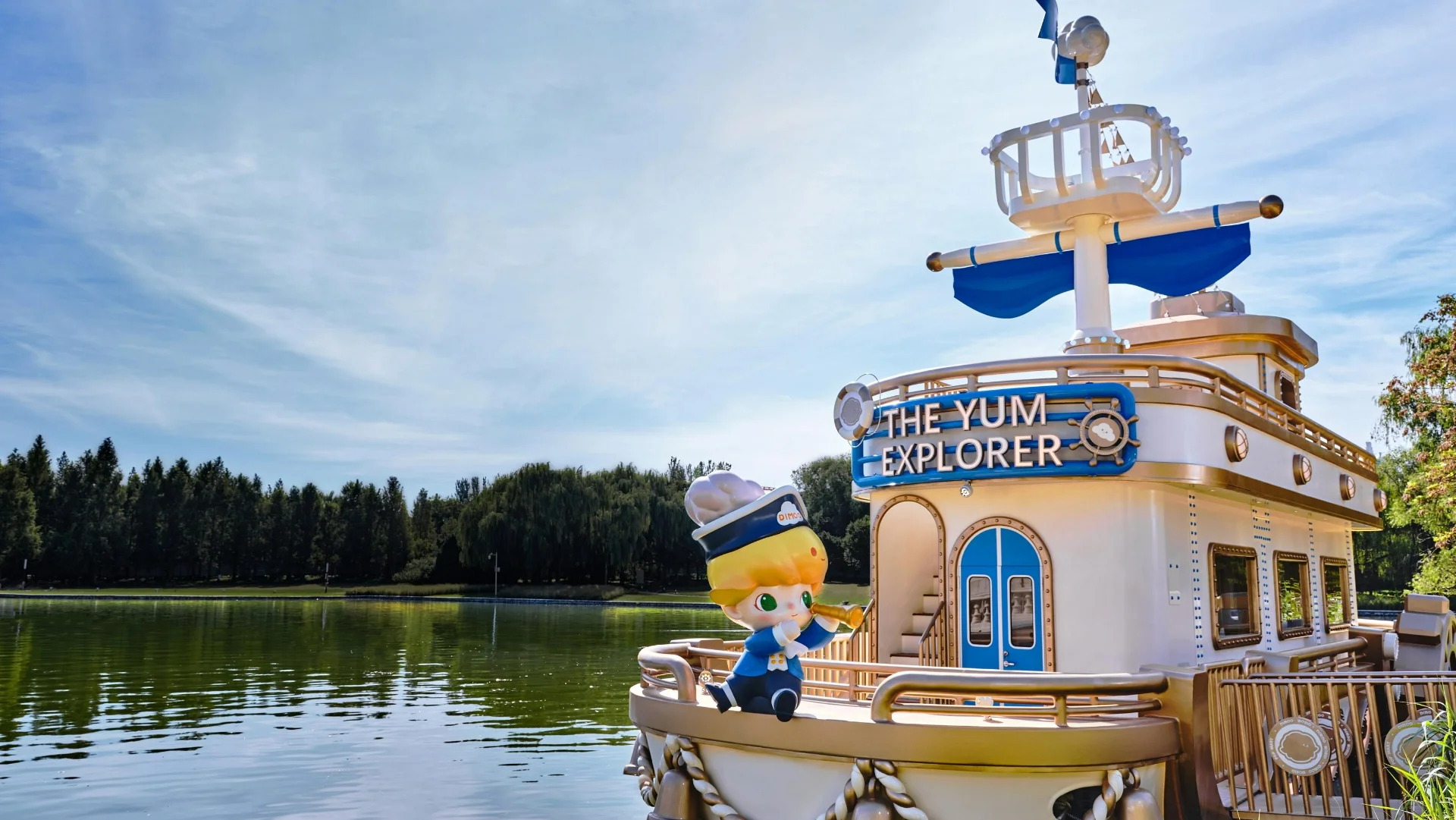 At Bubble Street, characters like MOLLY, LABUBU, DIMOO, SKULLPANDA, and PUCKY appear in installations, shops, and attractions such as the Little Sweet Bean Supermarket. The Forest Zone blends nature with THE MONSTERS family in a fishing village, treehouses, and a warrior tribe. At the center, MOLLY’s Castle stands as a landmark reflecting the charm of its star character. To the south, the Lakeside Area offers views of Fangzhou Lake and the DIMOO Exploration Yacht with desserts and drinks.